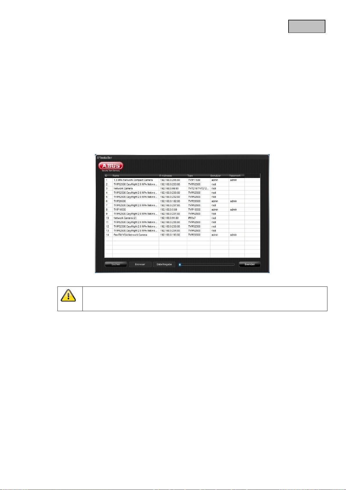 Po uruchomieniu Asystent wyszukuje wszystkie podłączone kamery sieciowe ABUS i serwery wideo