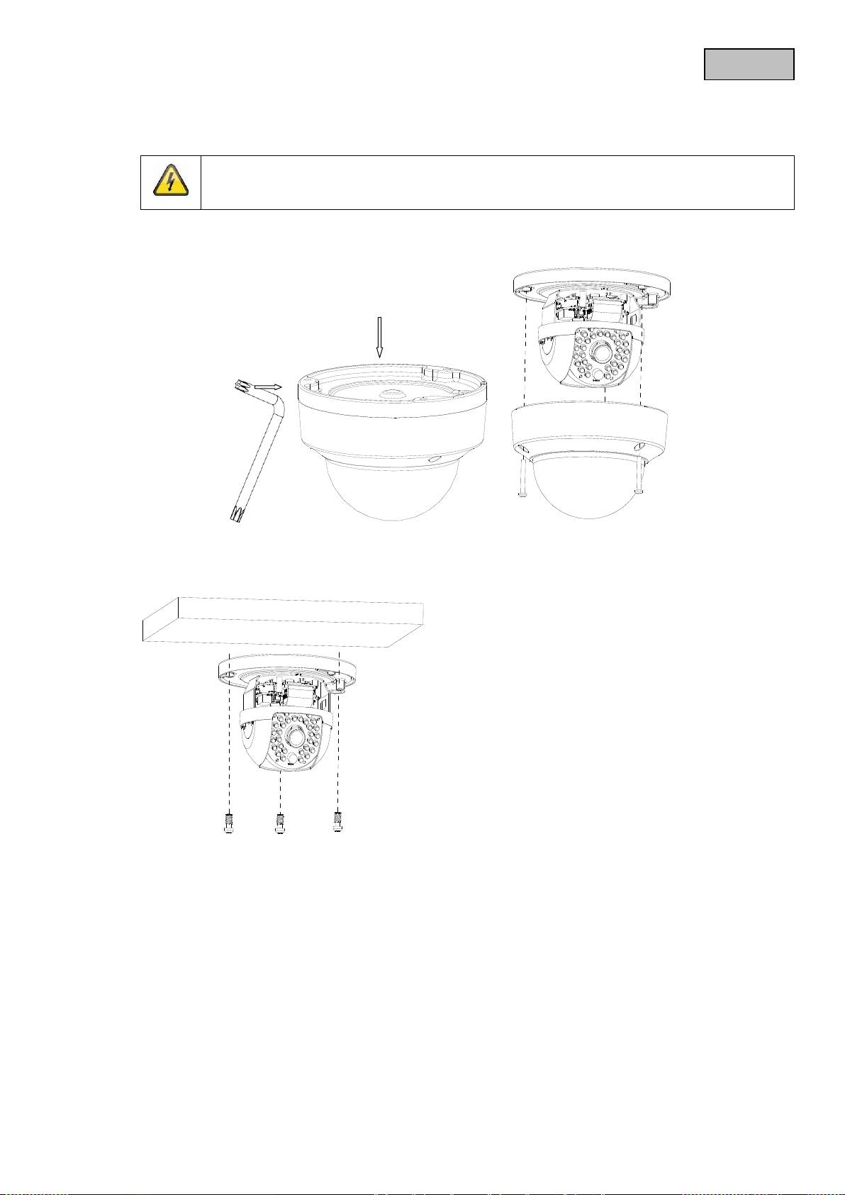 W trakcie montażu kamera musi być odłączona od napięcia sieciowego.