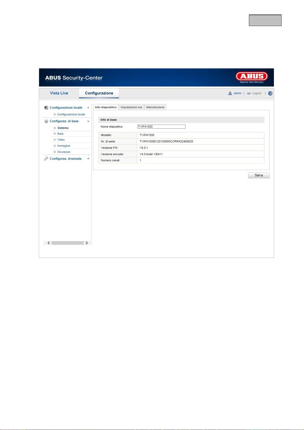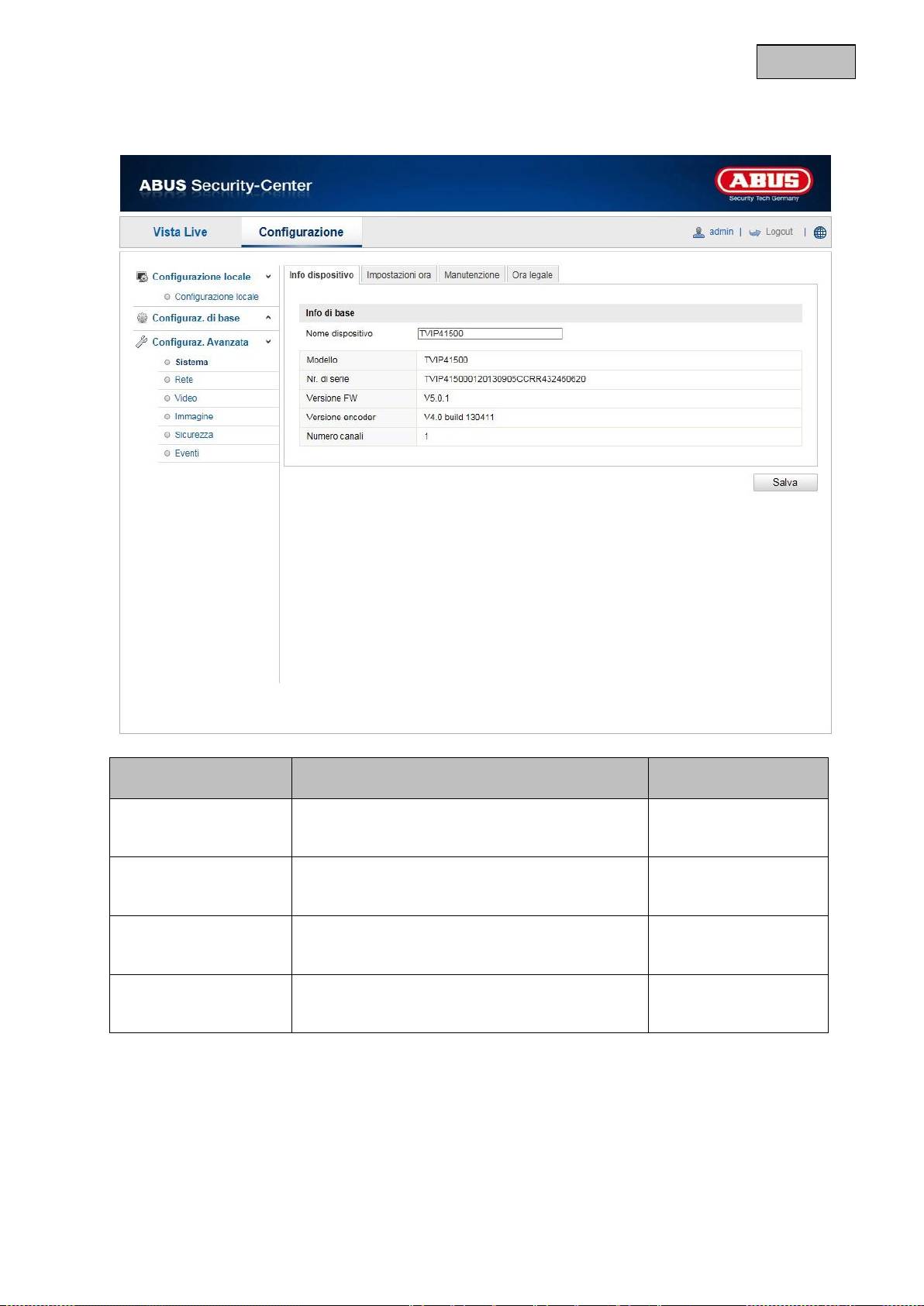 Qui è possibile assegnare un nome alla videocamera. Cliccare su “Salva” per acquisire il nome.