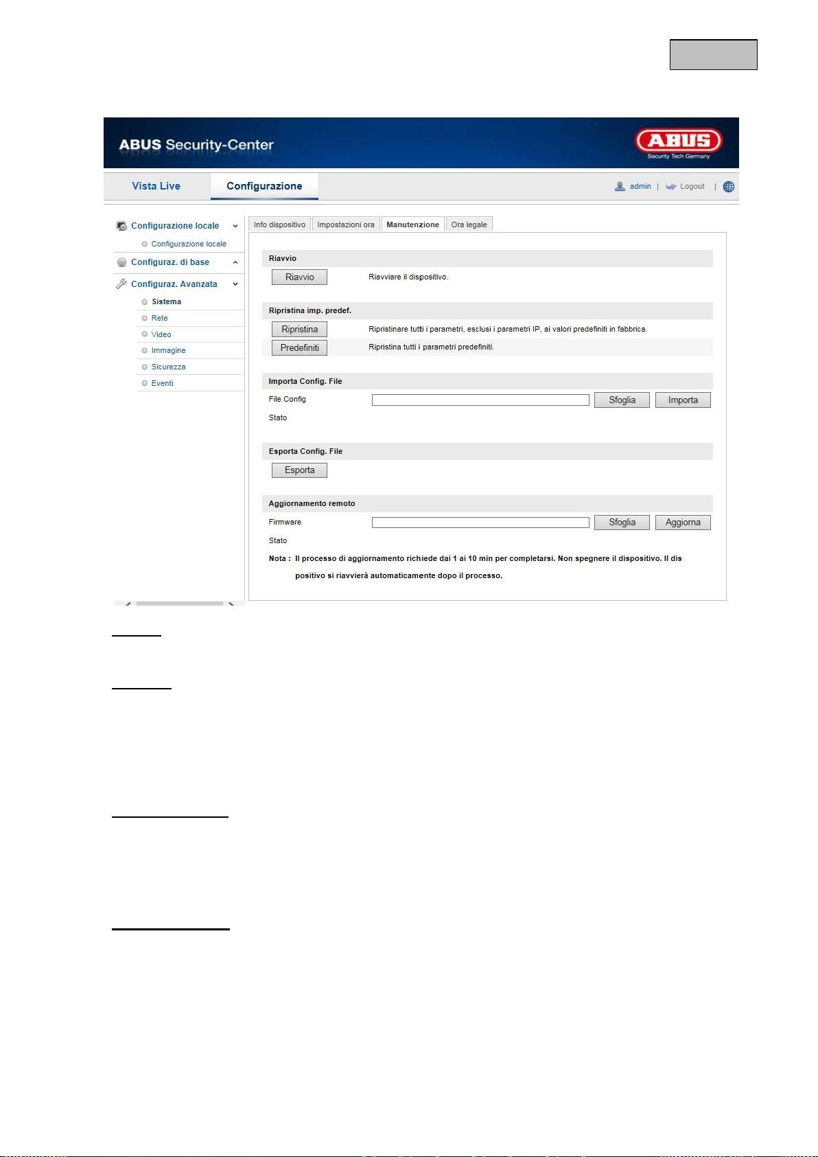 Cliccare su “Esporta” per esportare un file di configurazione.