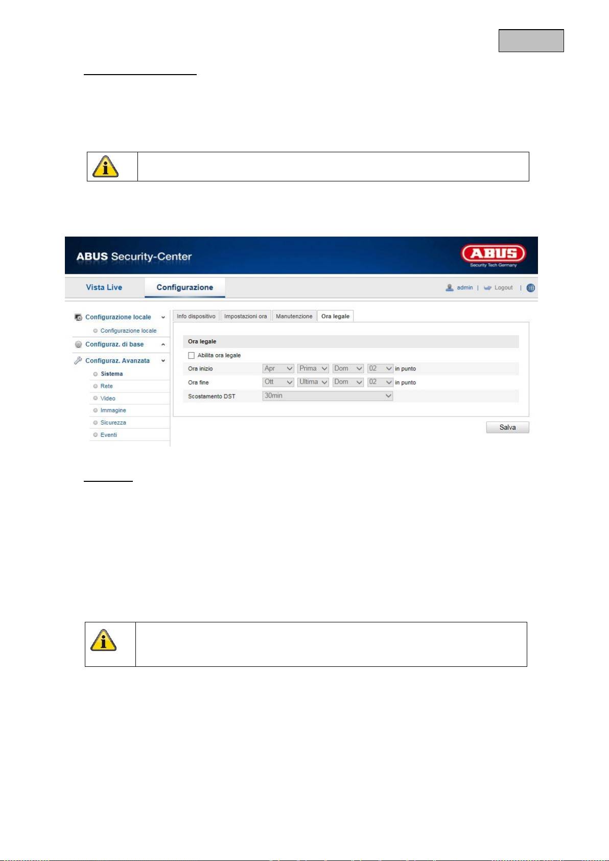 Selezionare “Ora legale” per adattare automaticamente l’ora del sistema sull’ora legale.