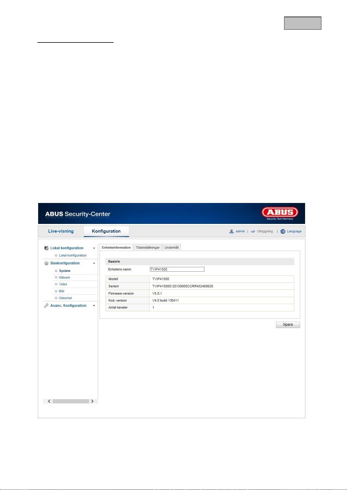 Här kan du ange ett namn för kameran. Klicka på ”Spara” för att spara inställningen.