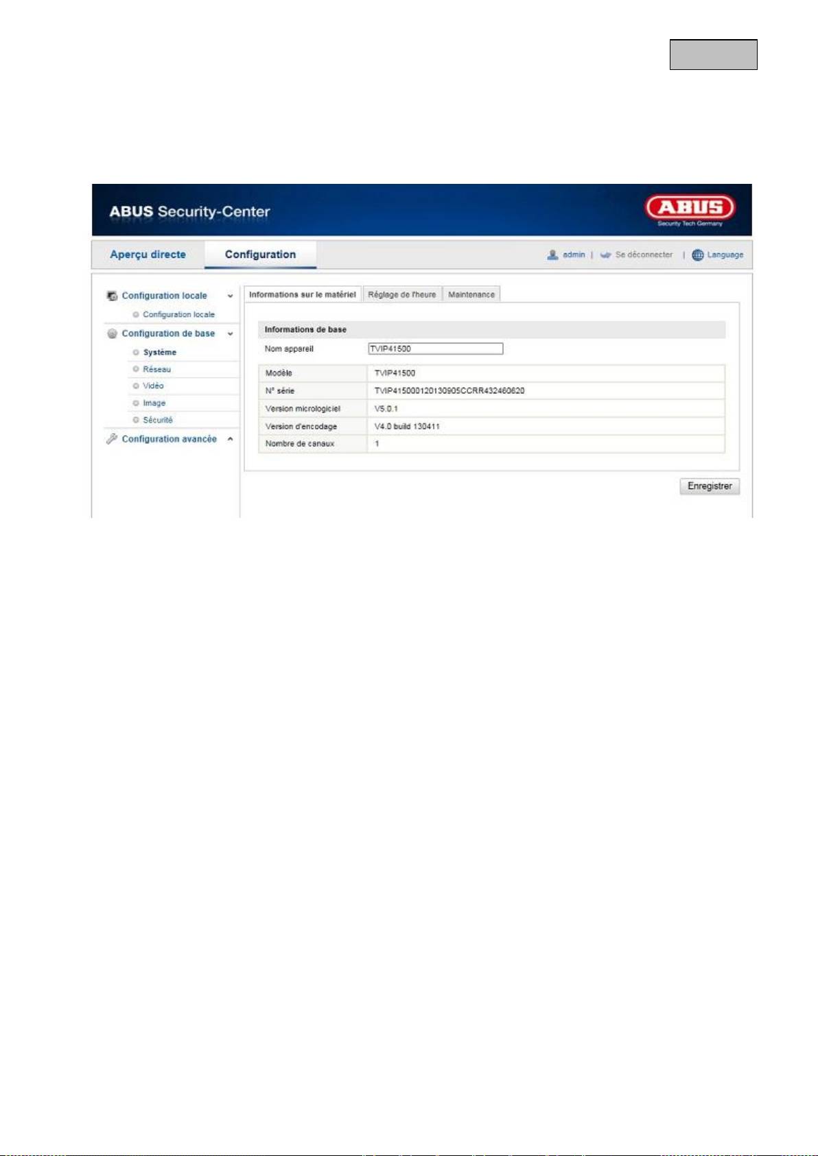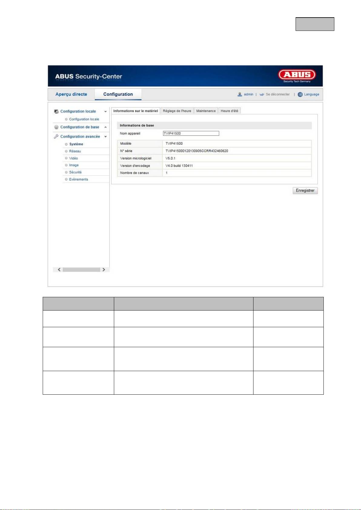Vous pouvez ici attribuer un nom d'appareil au Caméra. Cliquez sur « Enregistrer » pour le mémoriser.