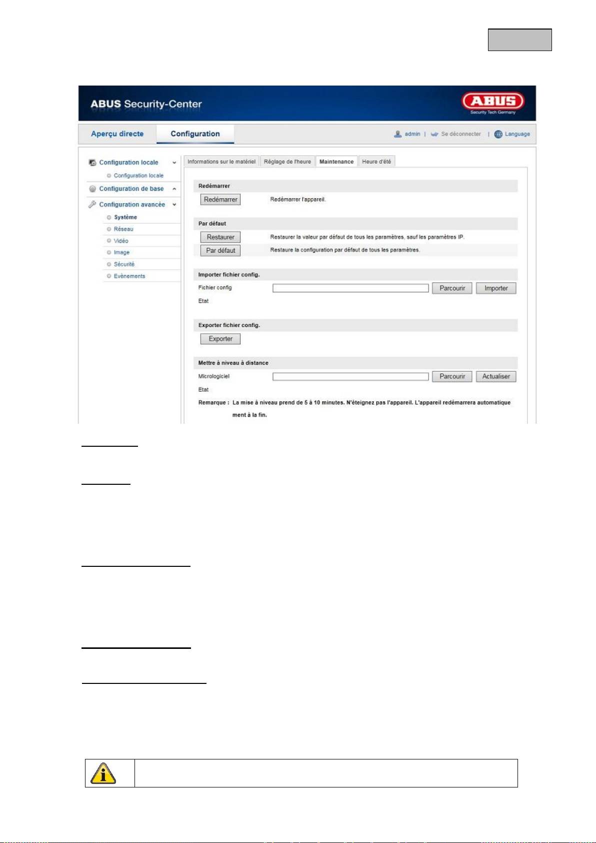 Configuration de la maintenance du système