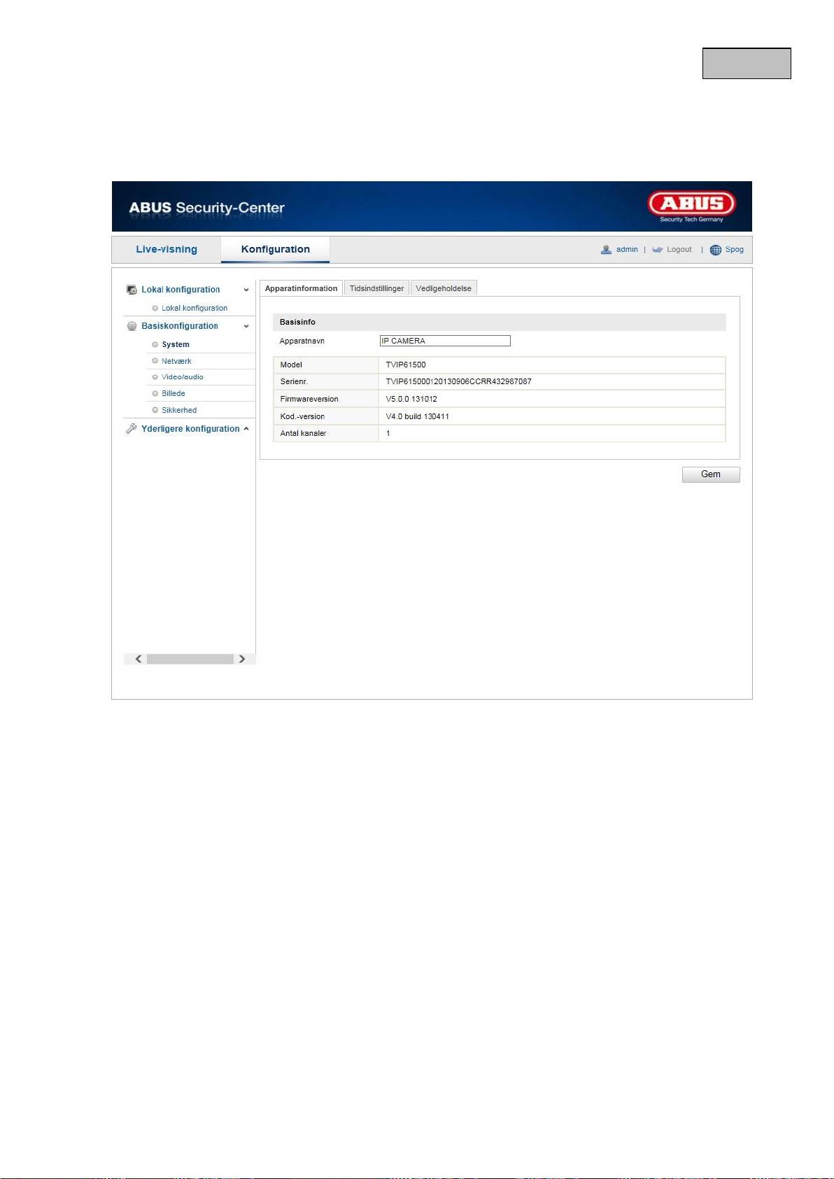 -> Du er nu forbundet med netværkskameraet og ser allerede en videostream.