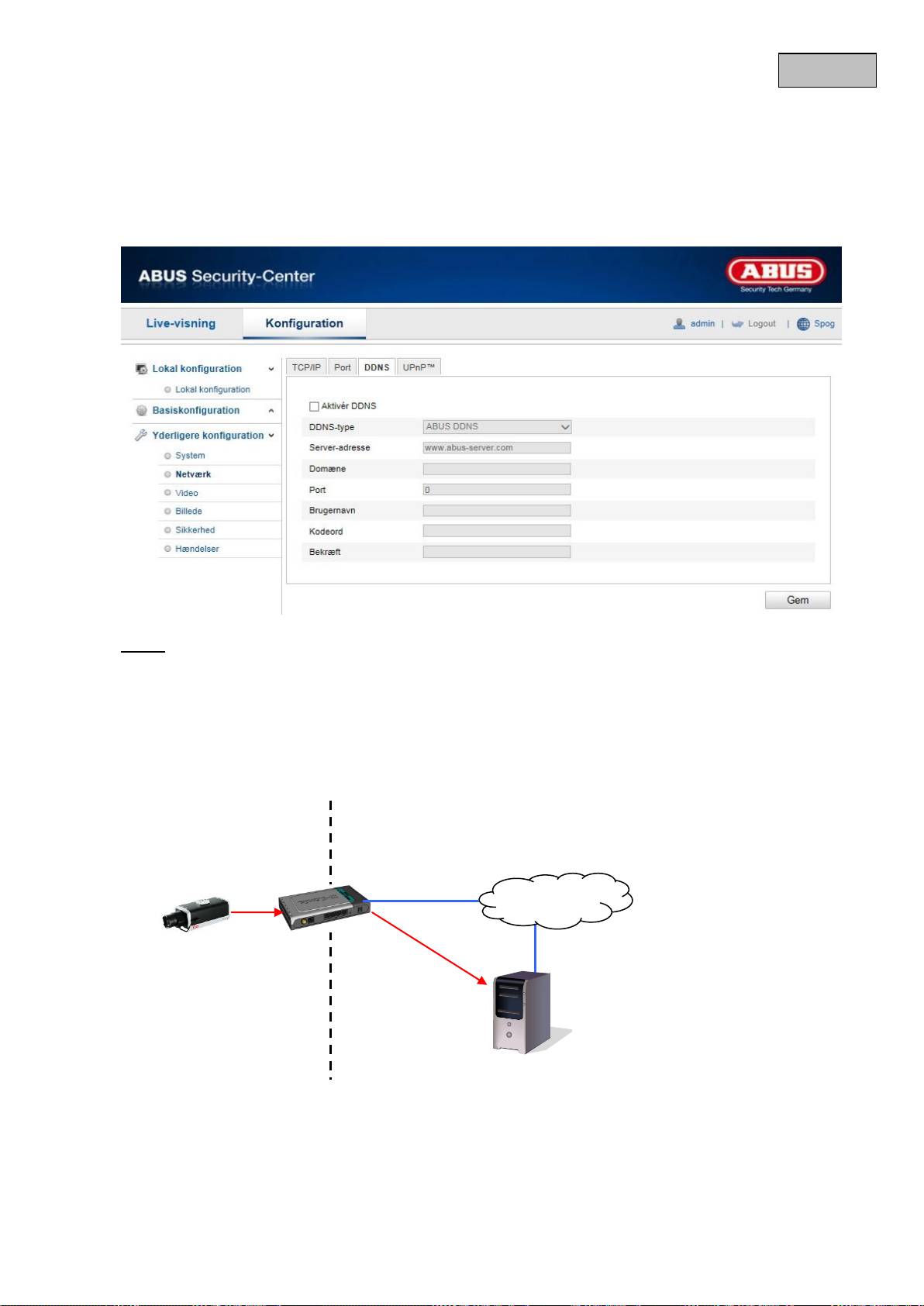 Hvis du har valgt DDNS-typen „ABUS DDNS“, gemmes serveradressen automatisk.