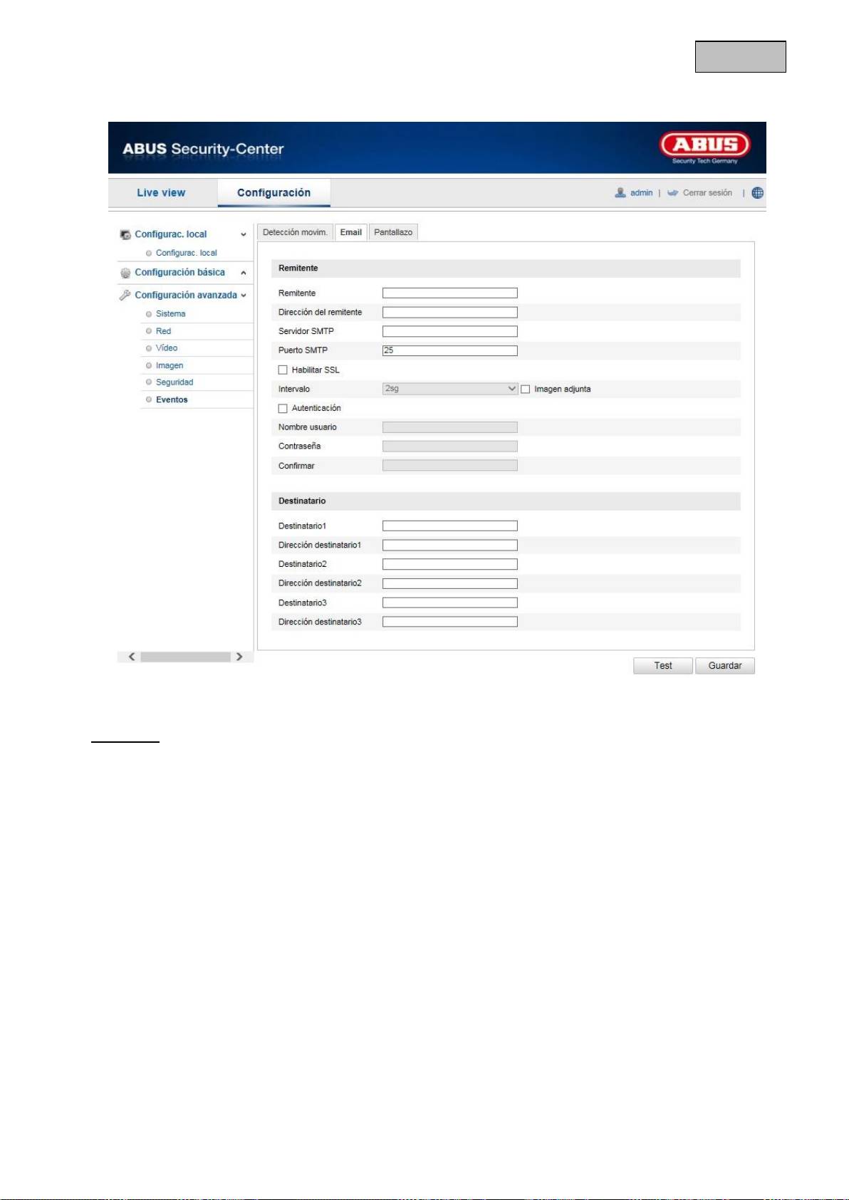 Introduzca aquí el puerto SMTP. Por defecto está configurado 25.