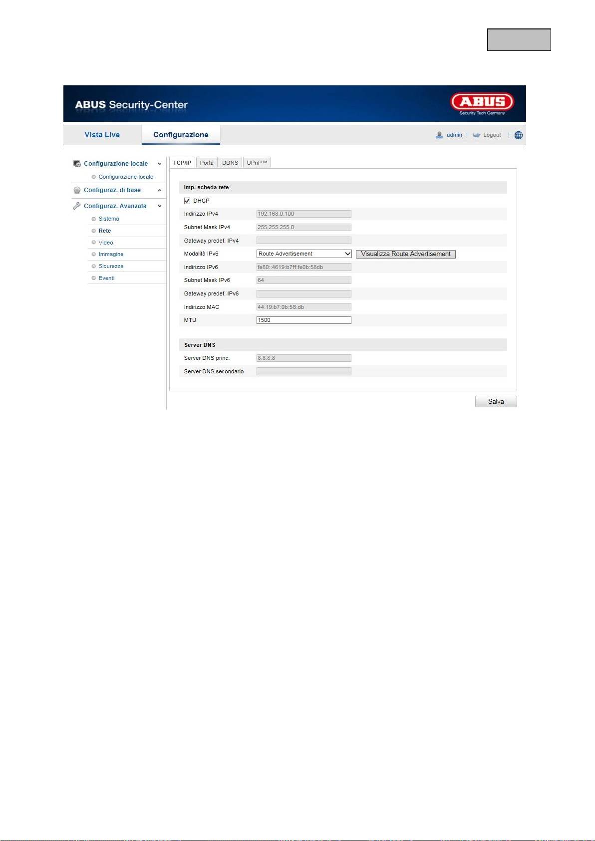 Qui è possibile attivare/disattivare la funzione UPnP.