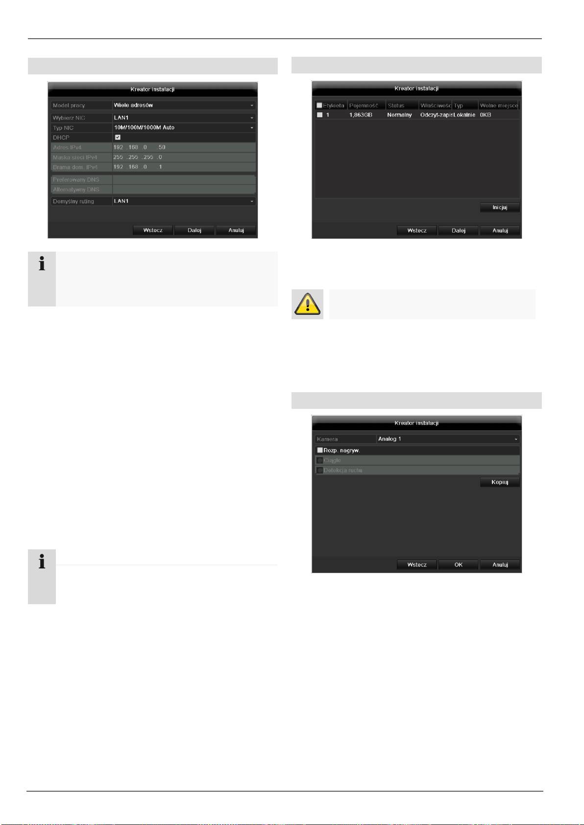 Kolejno konfigurowane są następujące ustawienia.