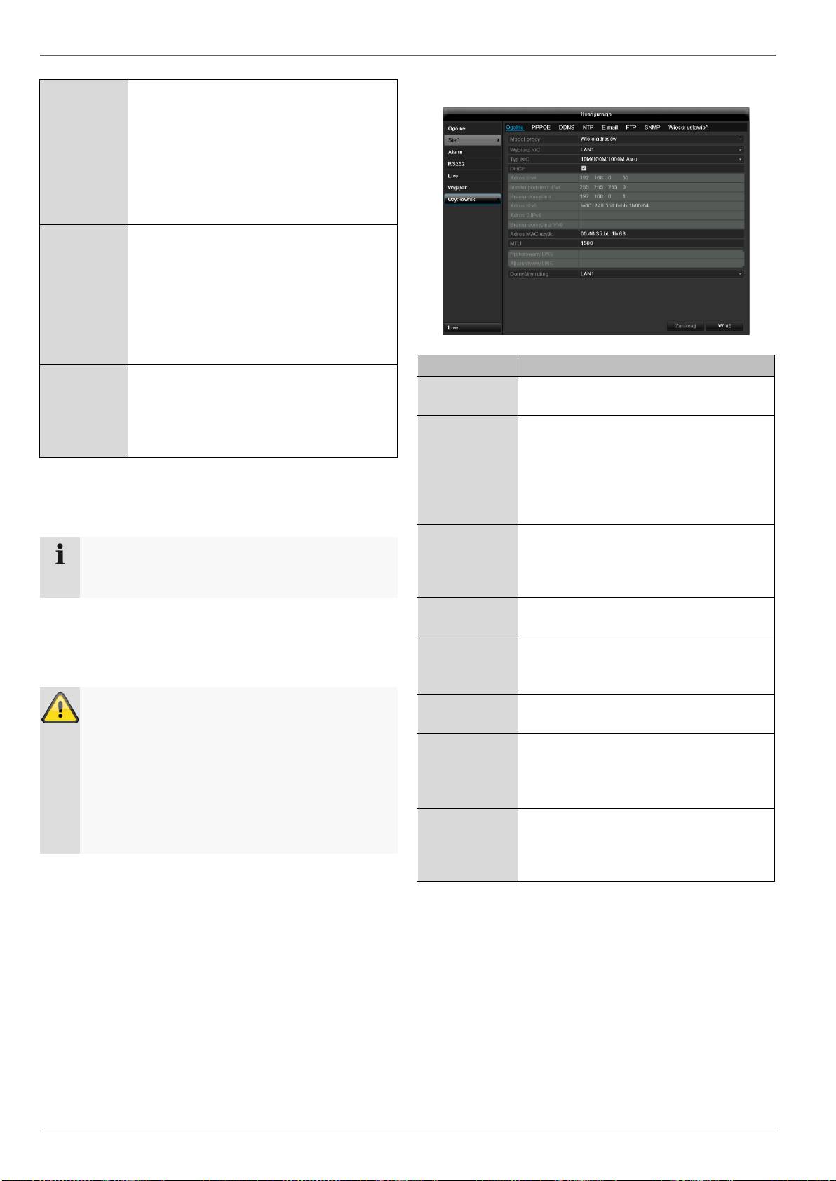 Ustawienia sieci lokalnej oraz wybór