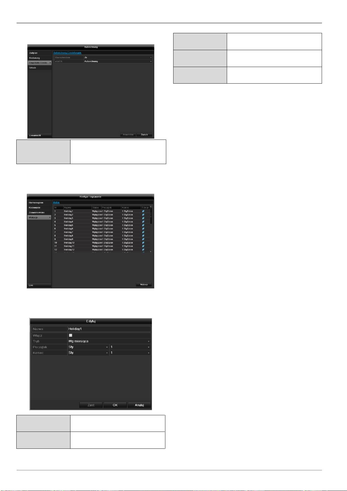 ustawieniach kamer, zapisu itd.