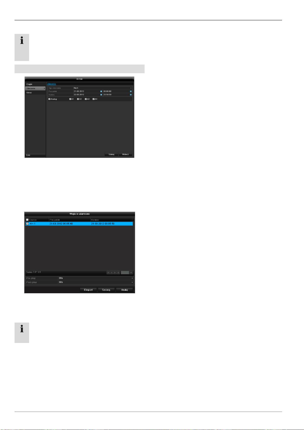 Zapisy „Pre-play“- / zapisy sprzed alarmu można