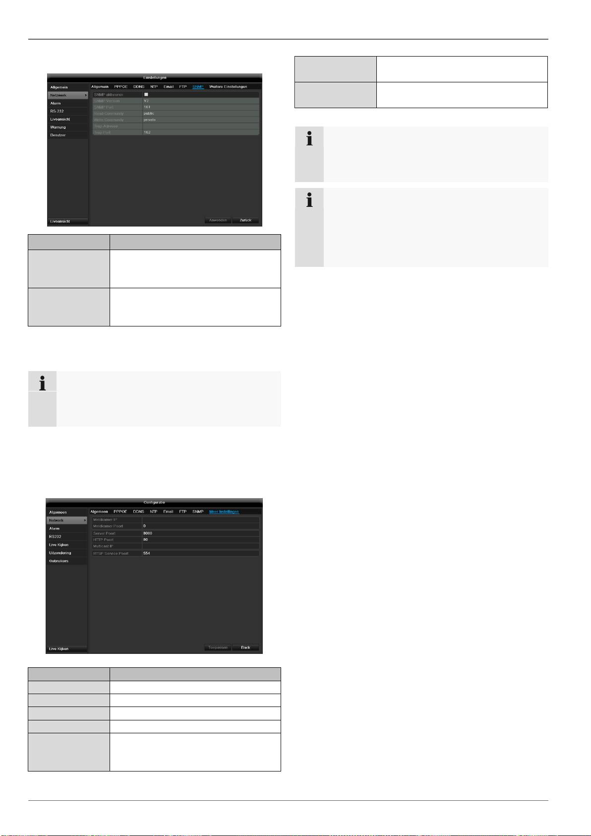 Beheer van alle instellingen (algemeen, netwerk, live kijken, waarschuwing,