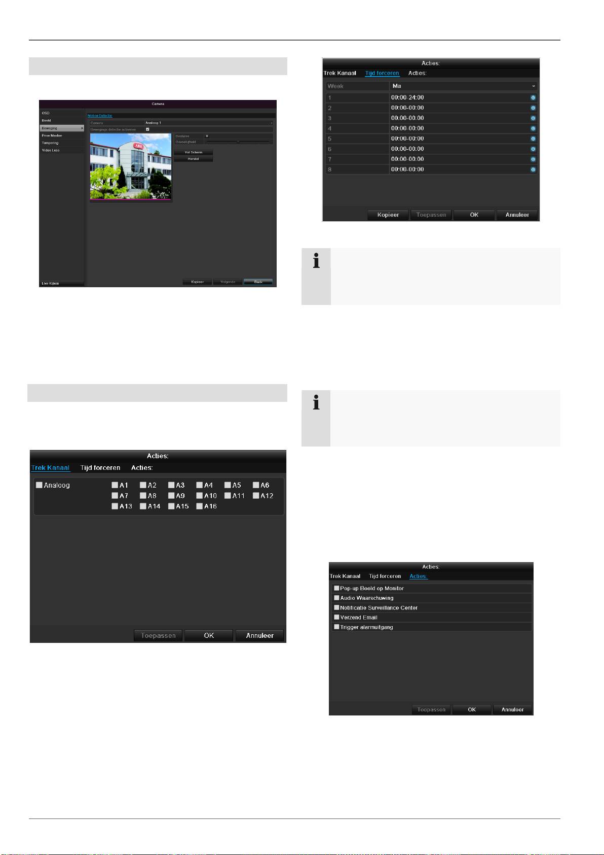 beeldmodus, bewegingsherkenning, privé-zone, sabotagebeveiliging, vi-