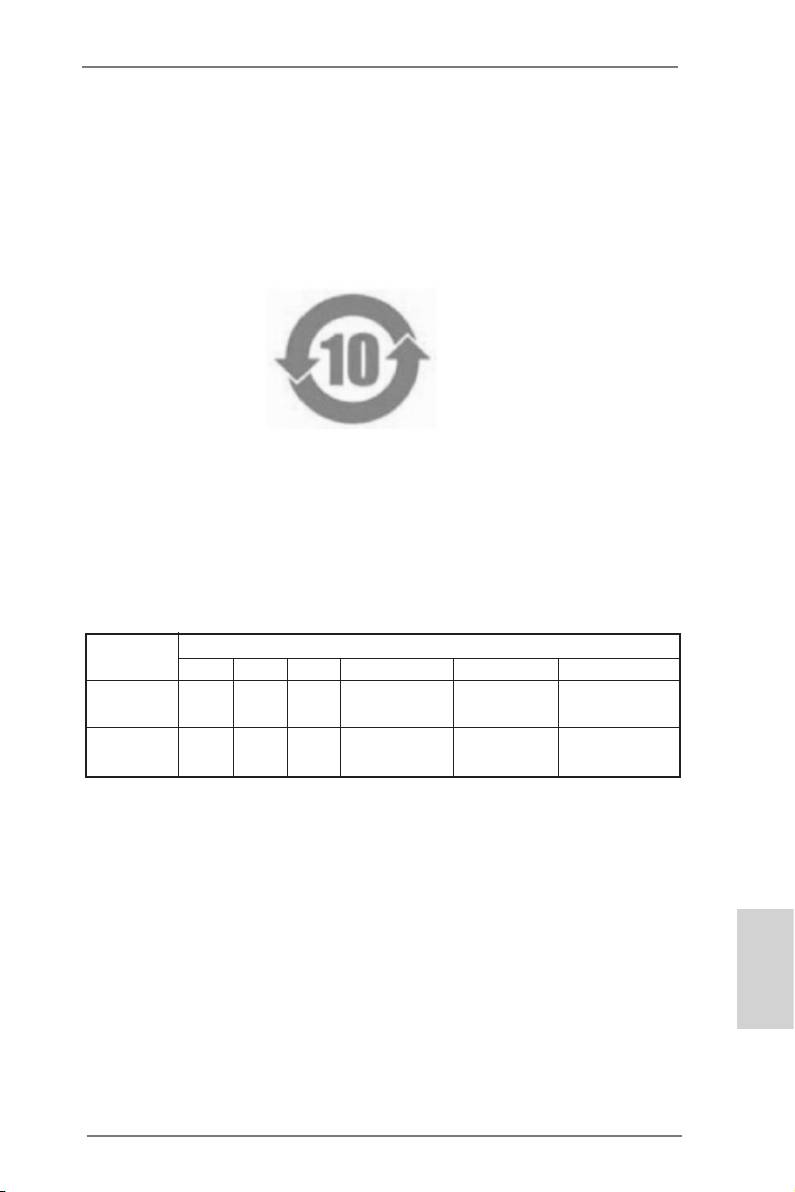 依據中國發布的「電子信息產品污染控制管理辦法」及 SJ/T 11364-2006「電子信息