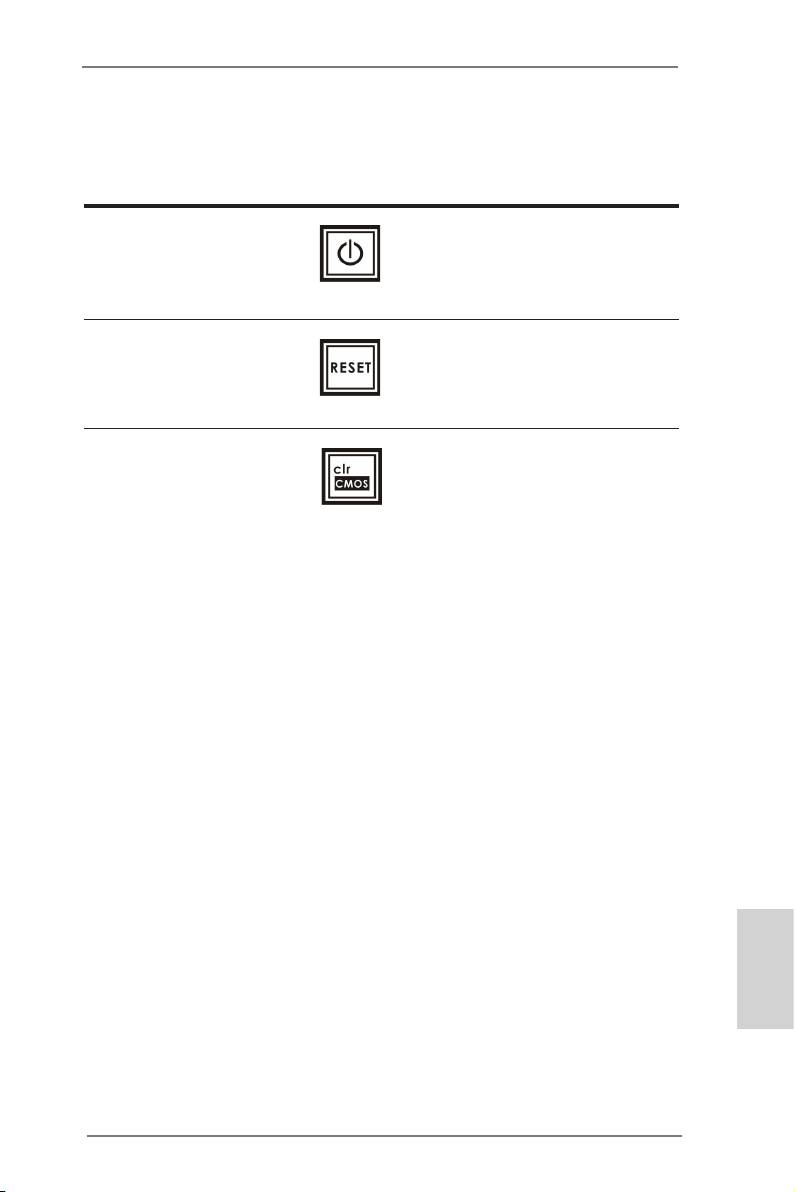 本主機板有三個快速開關 : 電源開關 , 重置開關與 CMOS 數據清除開關 , 可讓用戶快