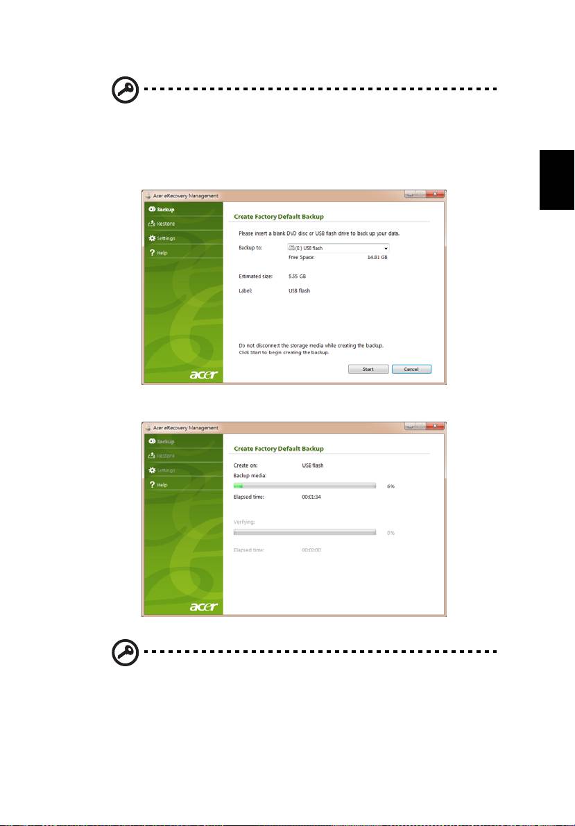 palavra-passe do Acer eRecovery Management. A palavra-passe é configurada