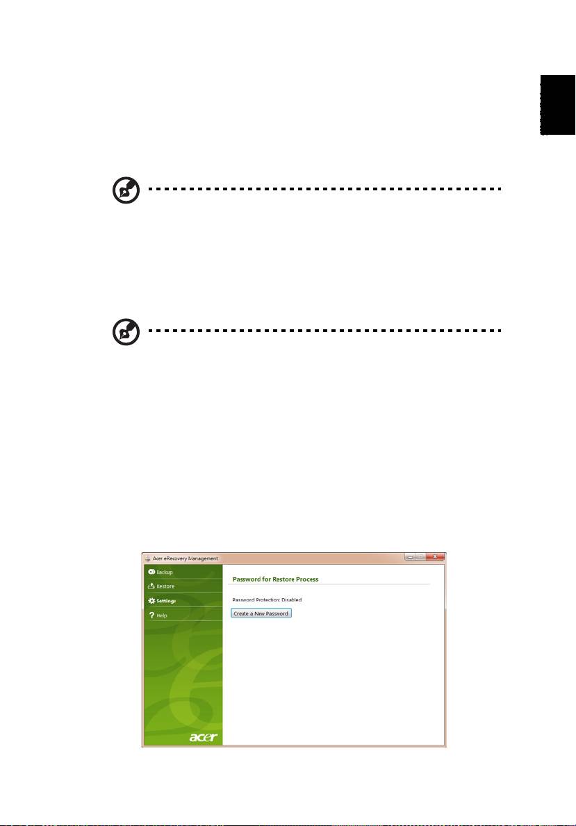 Pour utiliser la fonction de protection par mot de passe de Acer eRecovery
