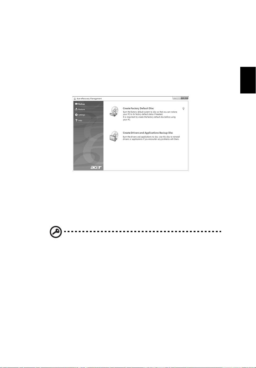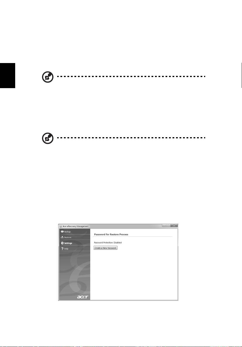 klõpsata ka Start > Kõik programmid > Acer Backup Manager > Acer Backup