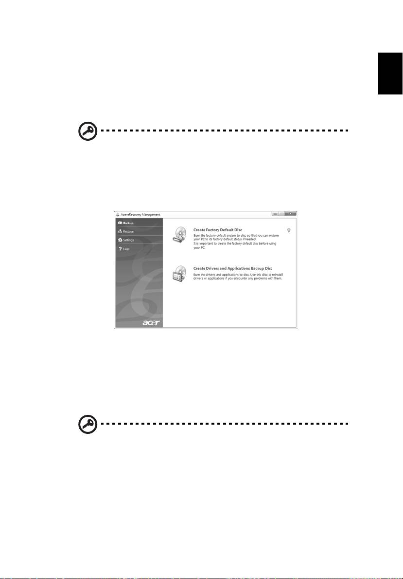 tuşuna basın. Alternatif olarak Başlat > Tüm Programlar > Acer Backup
