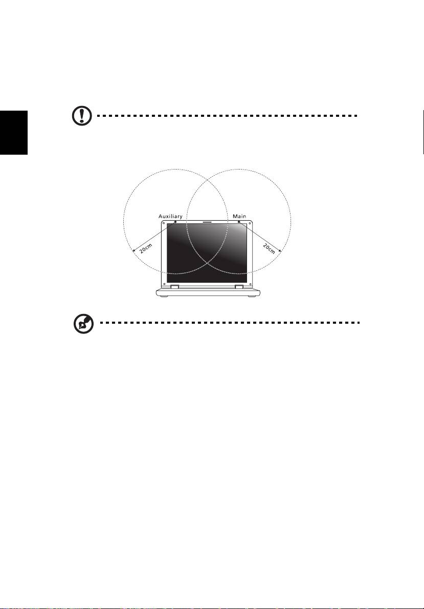 måste ett avstånd på minst 20 cm (8 tum) upprätthållas mellan