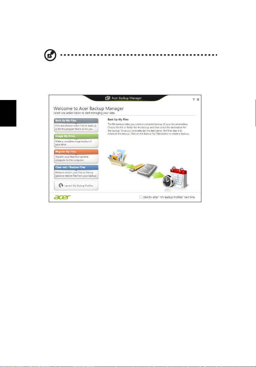 Backup Manager. Du kan gå der fra velkomstskærmen til Acer Backup Manager ved