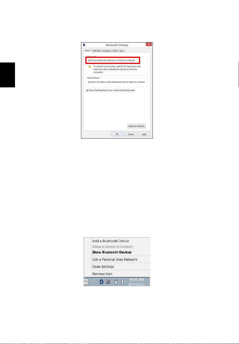 Zaznacz pole wyboru Zezwalaj urządzeniom Bluetooth na odnalezienie tego