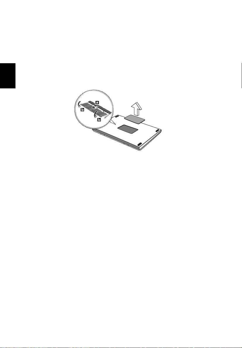 3Zasuňte pamět’ový modul diagonálně do patice (a) a lehce jej zatlačte, aby