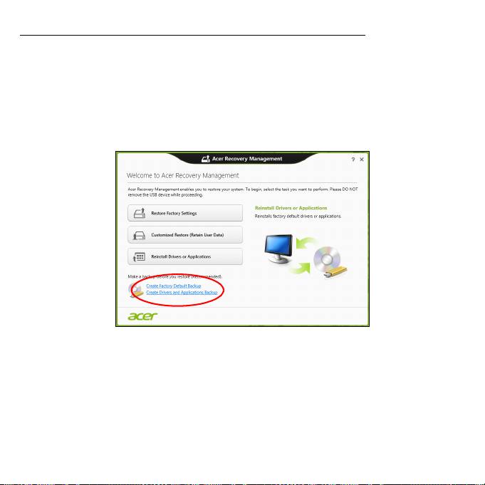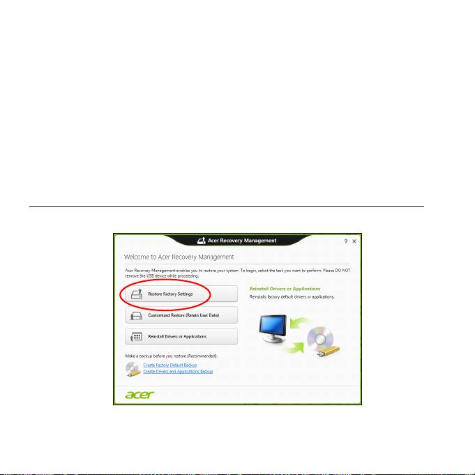 Nota: Acer Recovery Management è disponibile soltanto con un