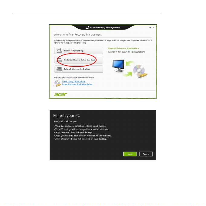 1. A partir de Iniciar, introduza "Recovery" e depois clique em Acer