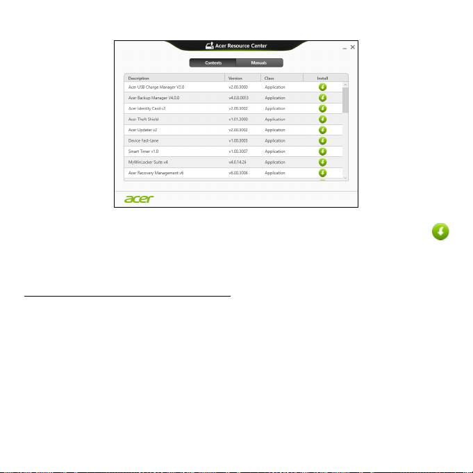 • Acer Resource Center 의 내용 섹션이 표시됩니다 .