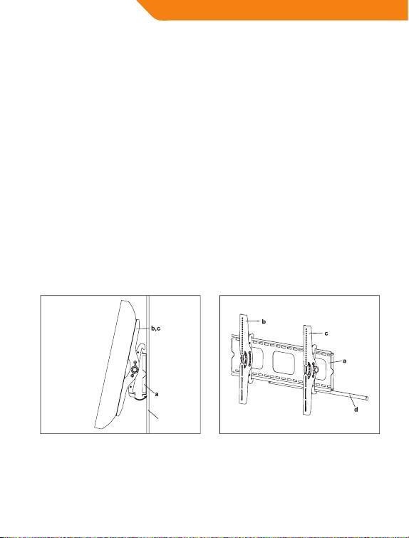 This TV mount must be securely attached to the vertical wall.