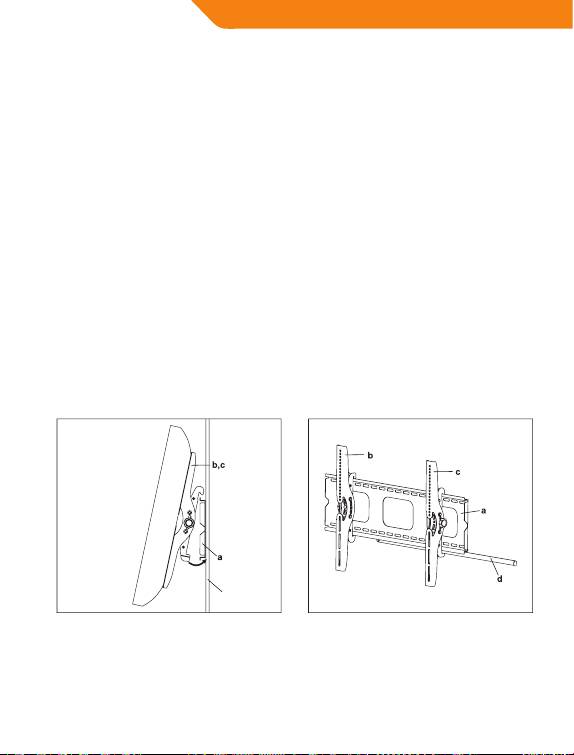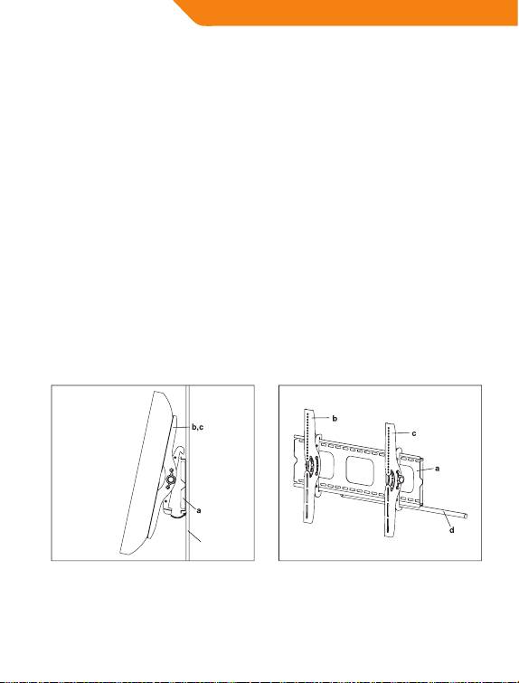 Najpierw zawiesić wsporniki monitora (b,c) na górze płytki naściennej (a)