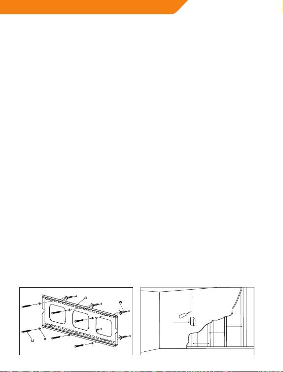 pie sienas, izmantojot 4 kokskrūves (u) un 4 kokskrūvju paplāksnes (v).
