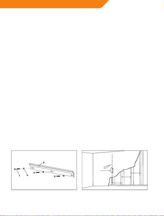 16”(406mm) apart. Use a stud nder to locate two adjacent studs. It is a