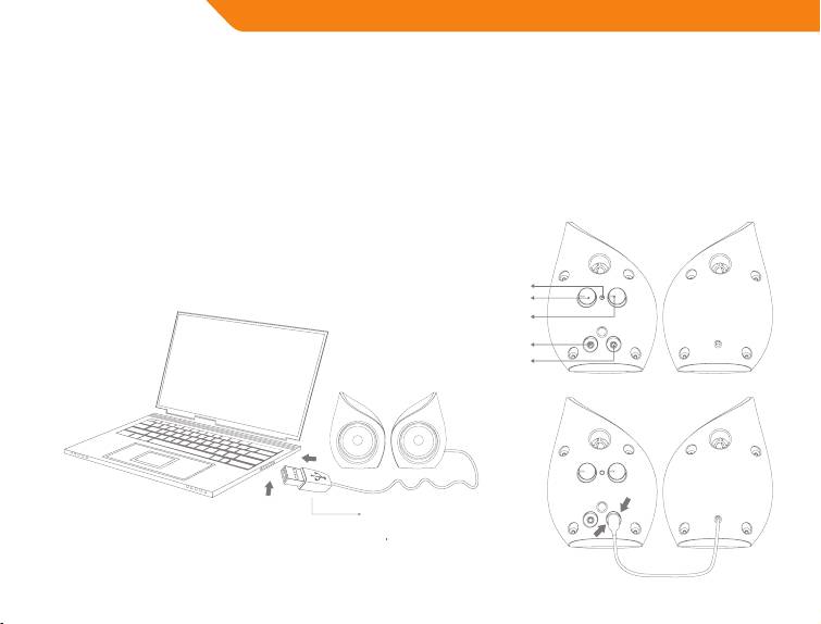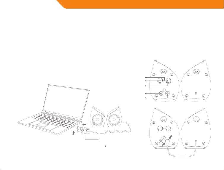 4. Branchez le câble d’entrée de signal de Ø 3,5 mm à la sortie jack audio du PC ou de la source