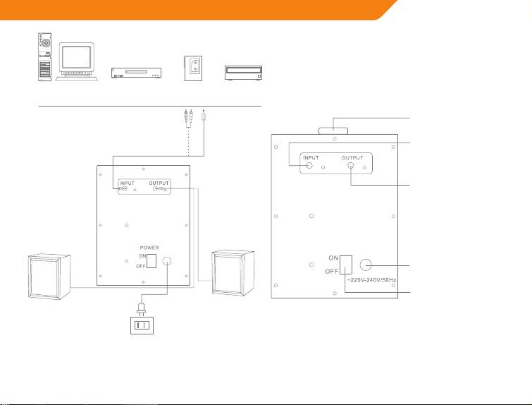 • Connecting with computer’s sound card: connect one end of 3.5mm stereo cable to computer’s