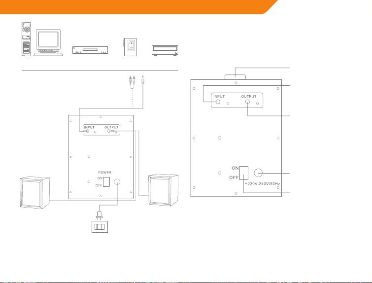 • СвържетекъмDVDилиVCD.Използвайте3.5ммдо2xRCAкабел.Белиятжаксвържете
