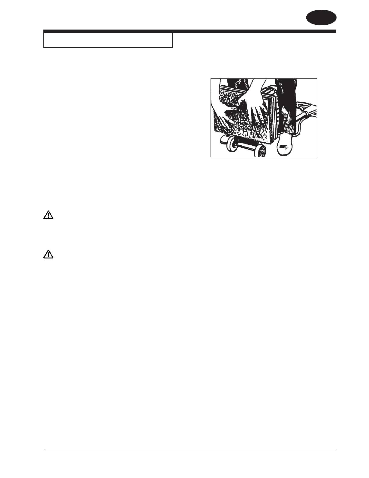 PERICOLO! • La sabbiatura/nitura di pavimenti in legno può creare atmosfere a rischio di esplosioni o incendi. Non utilizzare la macchina