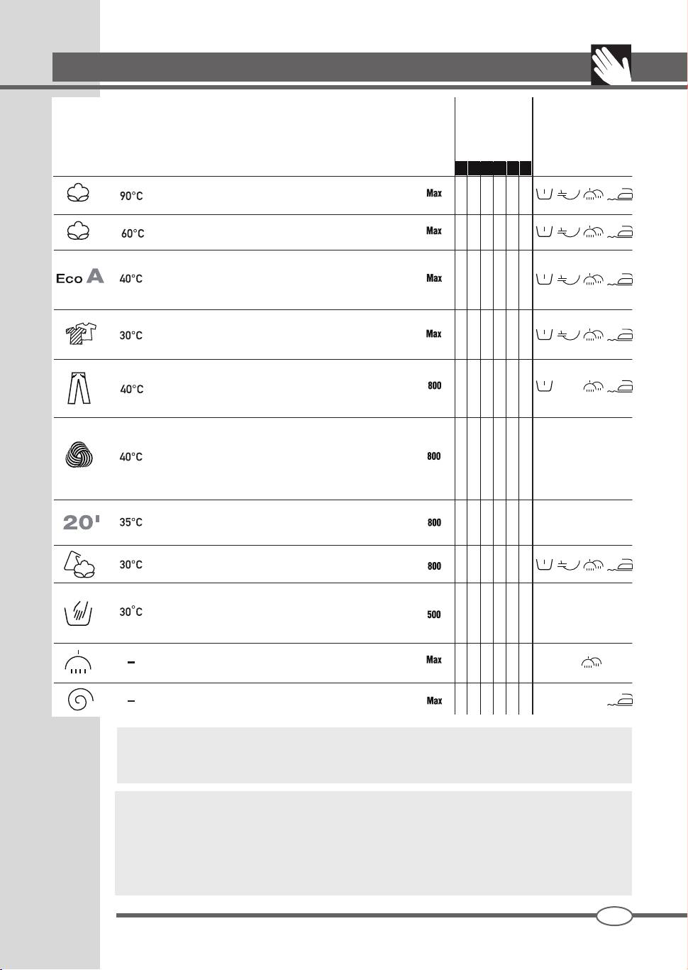 presencia de manchas particularmente resistentes. Ver la tabla de programas para