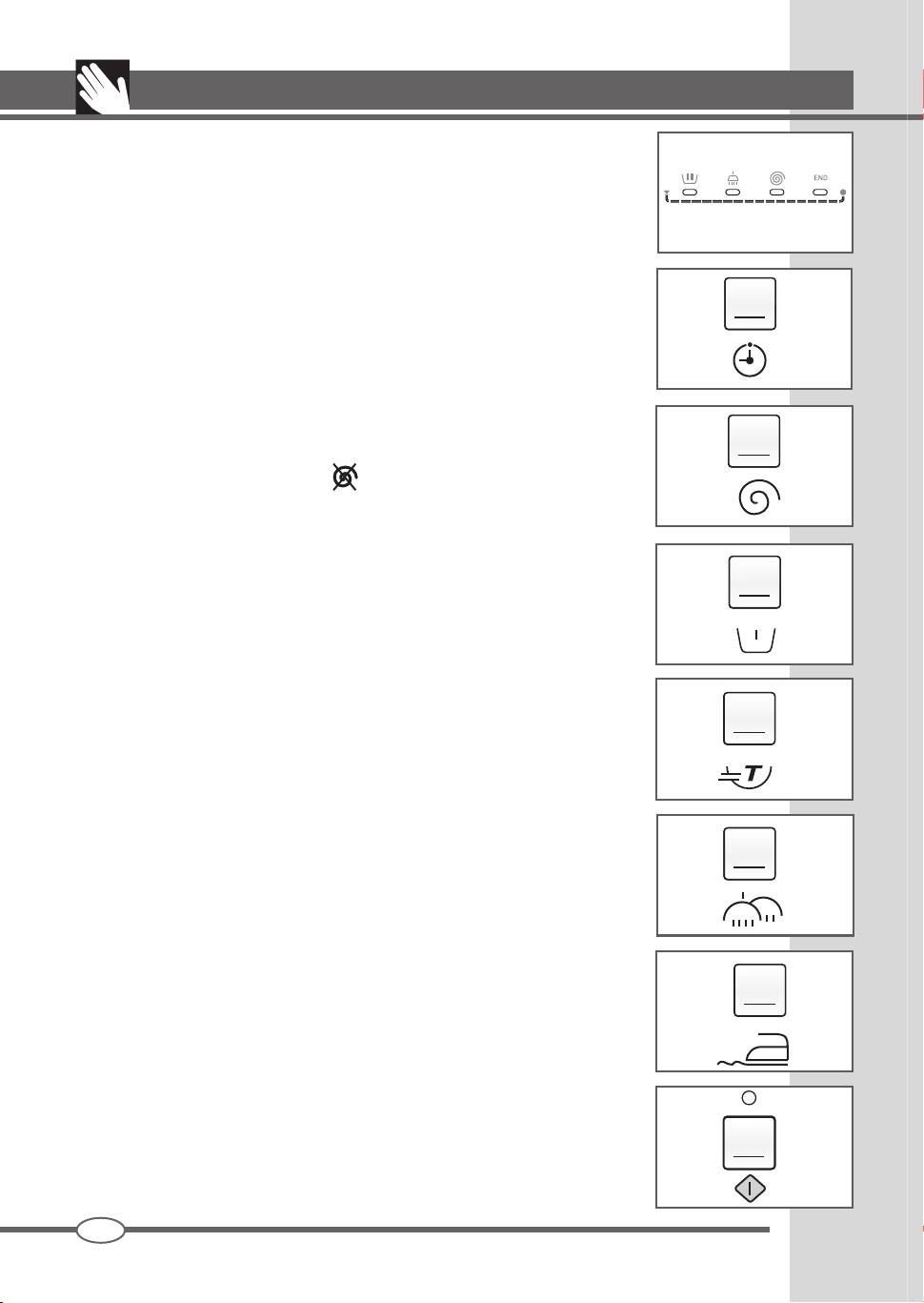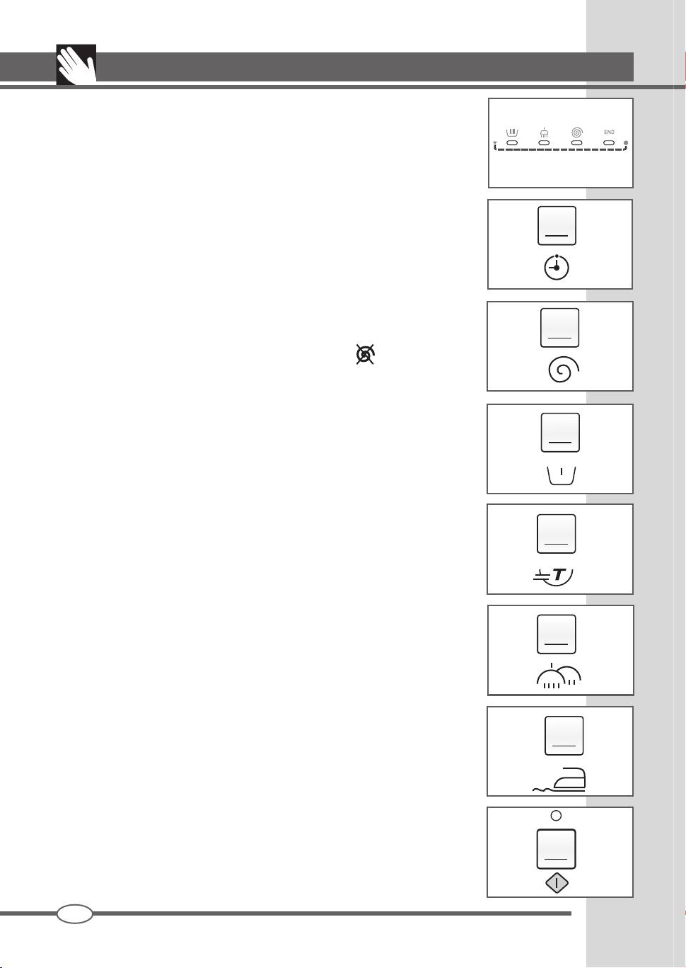 indikované rozsvietením príslušných svetelných kontroliek. Dĺžka cyklu prania sa mení v závislosti