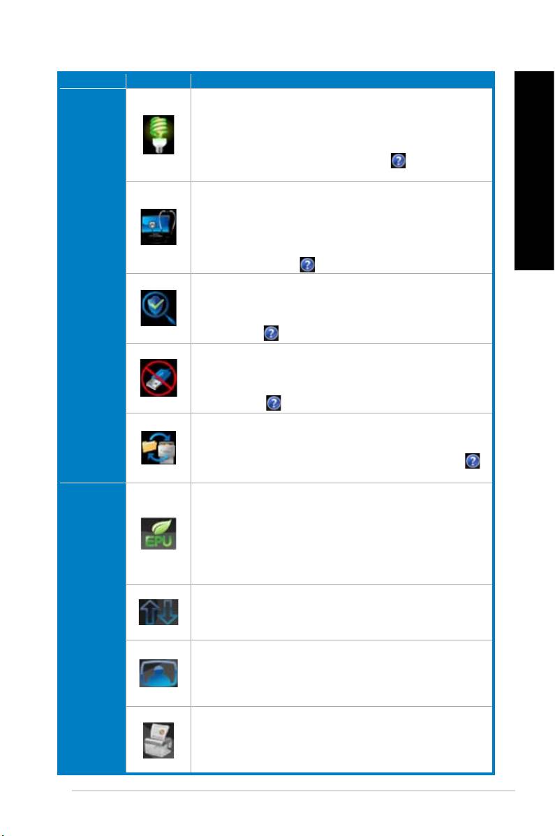 Klik på hver knap for at vælge og starte et hjælpeprogram, overvåge systemet, opdatere