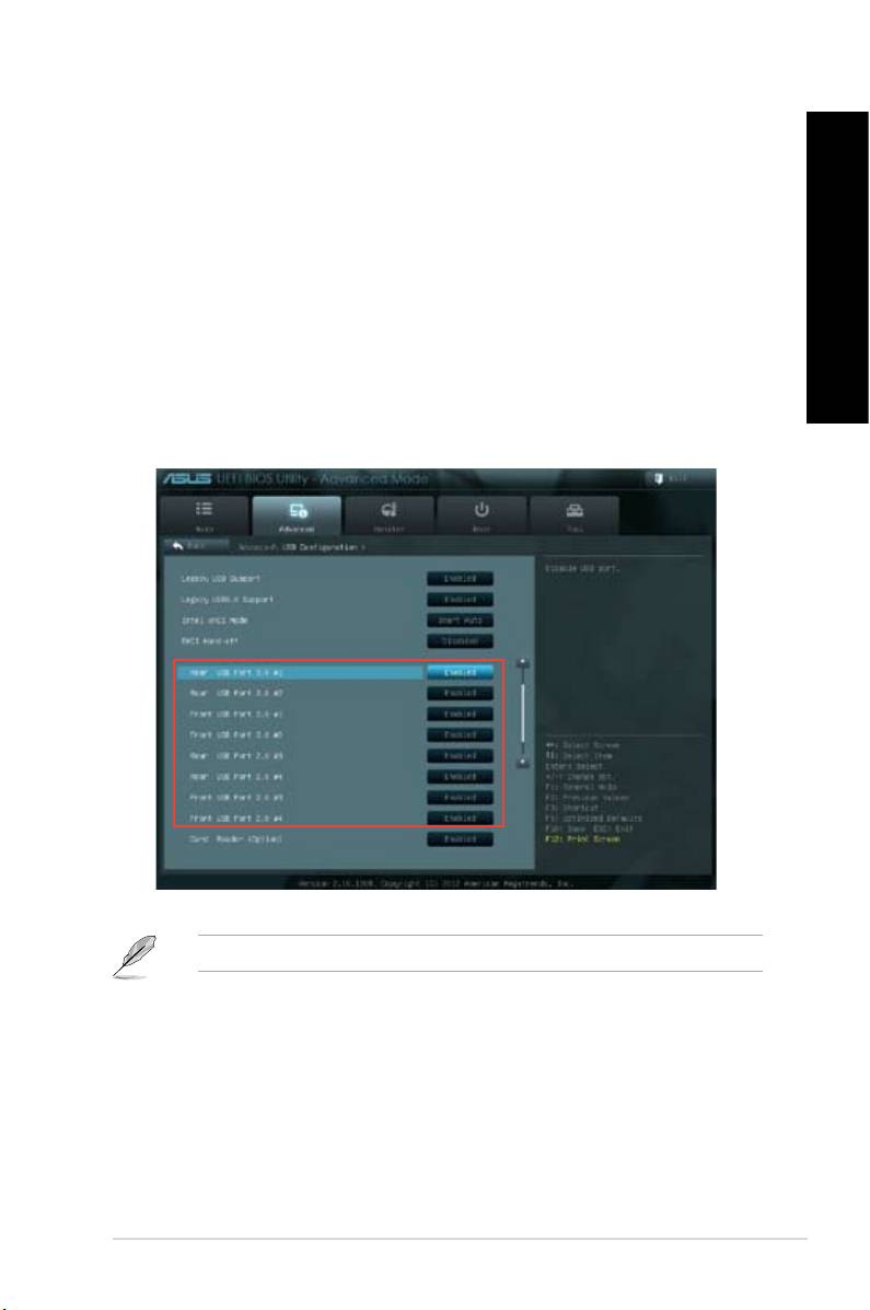 2. Fra BIOS-oppsettsskjermen, klikk på Advanced (Avansert) > USB Conguration