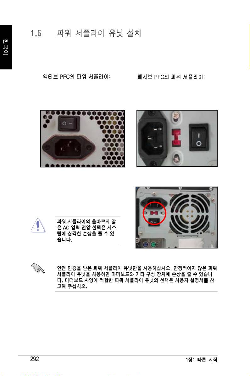 사용하는 파워서플라이가 지역 및 국가에 대해 올바르게 설정되어 있는지 확
