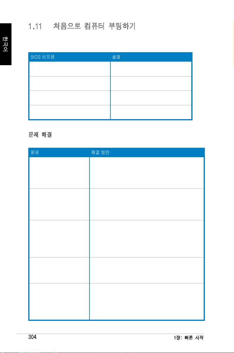 대부분의 부팅 실패와 디스플레이 문제는 장치의 문제 또는 올바르지 않은 설치로