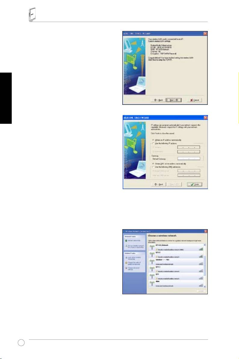 Wireless Zero Conguration เพื่อตั้งค่าการเชื่อมต่อ ถ้าคุณใช้การ์ดไวร์เลส ASUS
