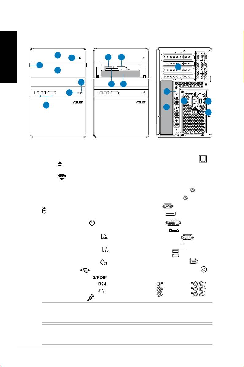 NOTA: *As ranhuras/portas do painel frontal/traseiro e suas localizações podem variar