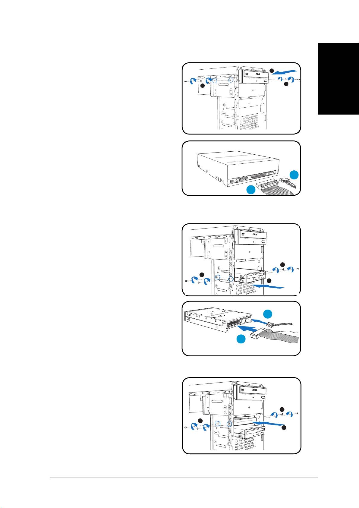 Se instalou uma unidade óptica e/ou uma unidade de disquetes, remova