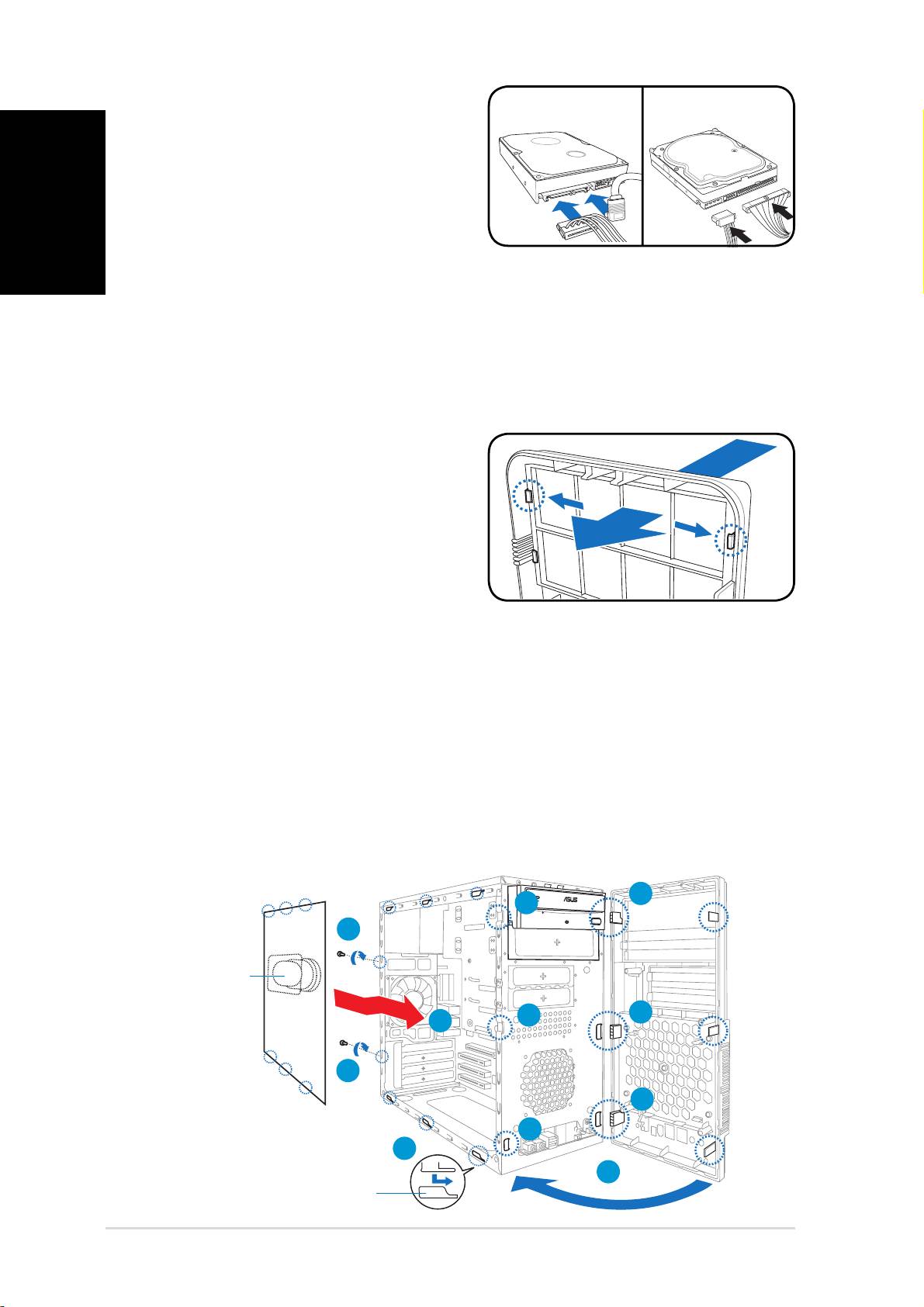 Para reinstalar o painel frontal e a tampa lateral: