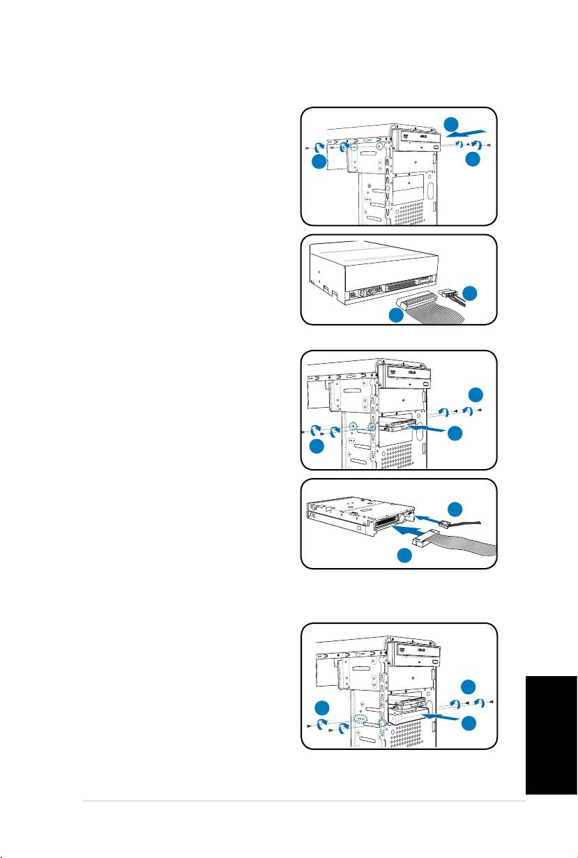 Если вы установили оптический привод и/или дисковод, перед установкой передней панели